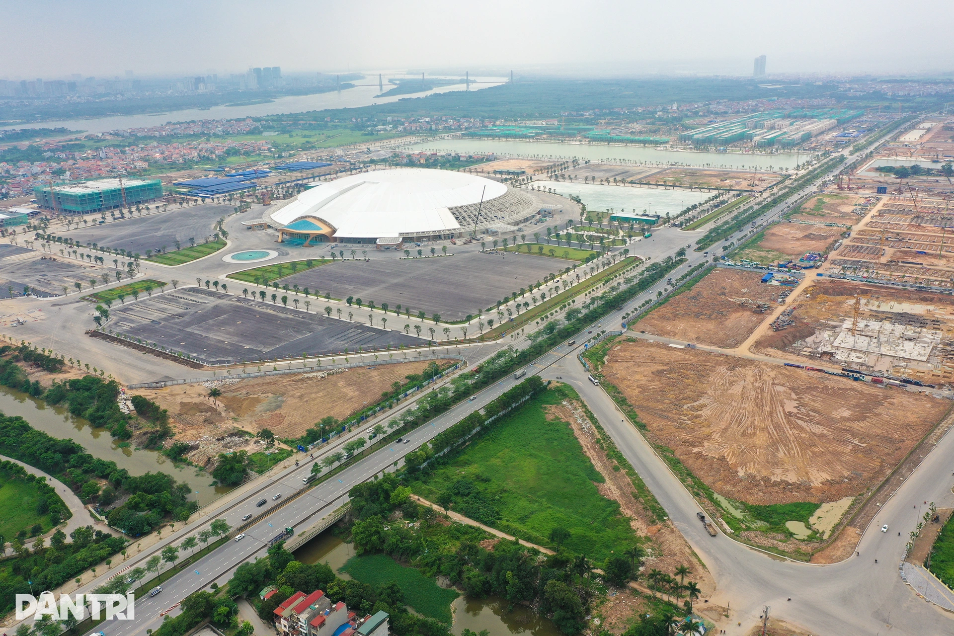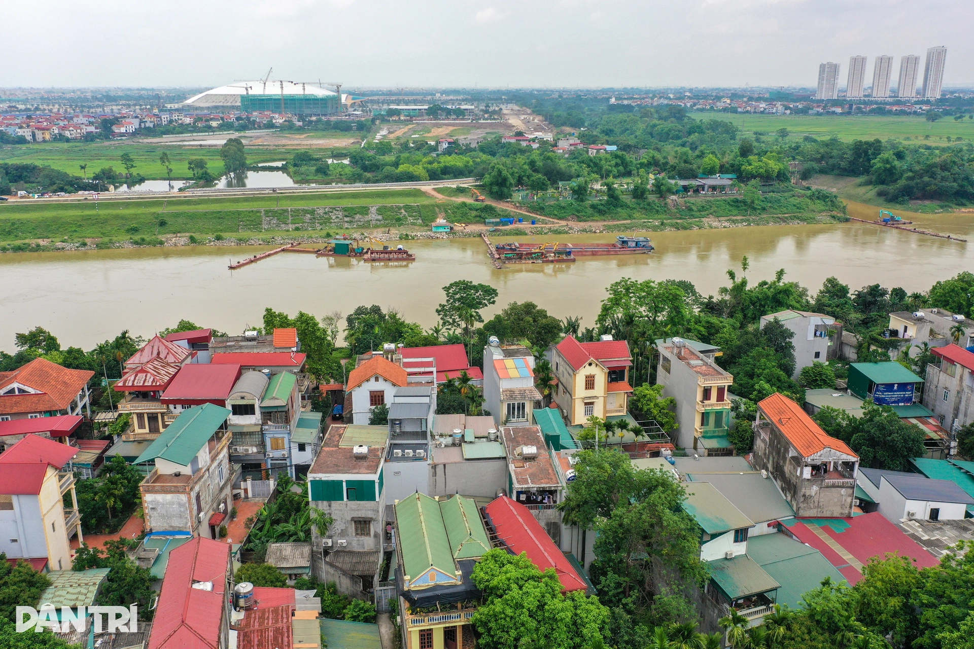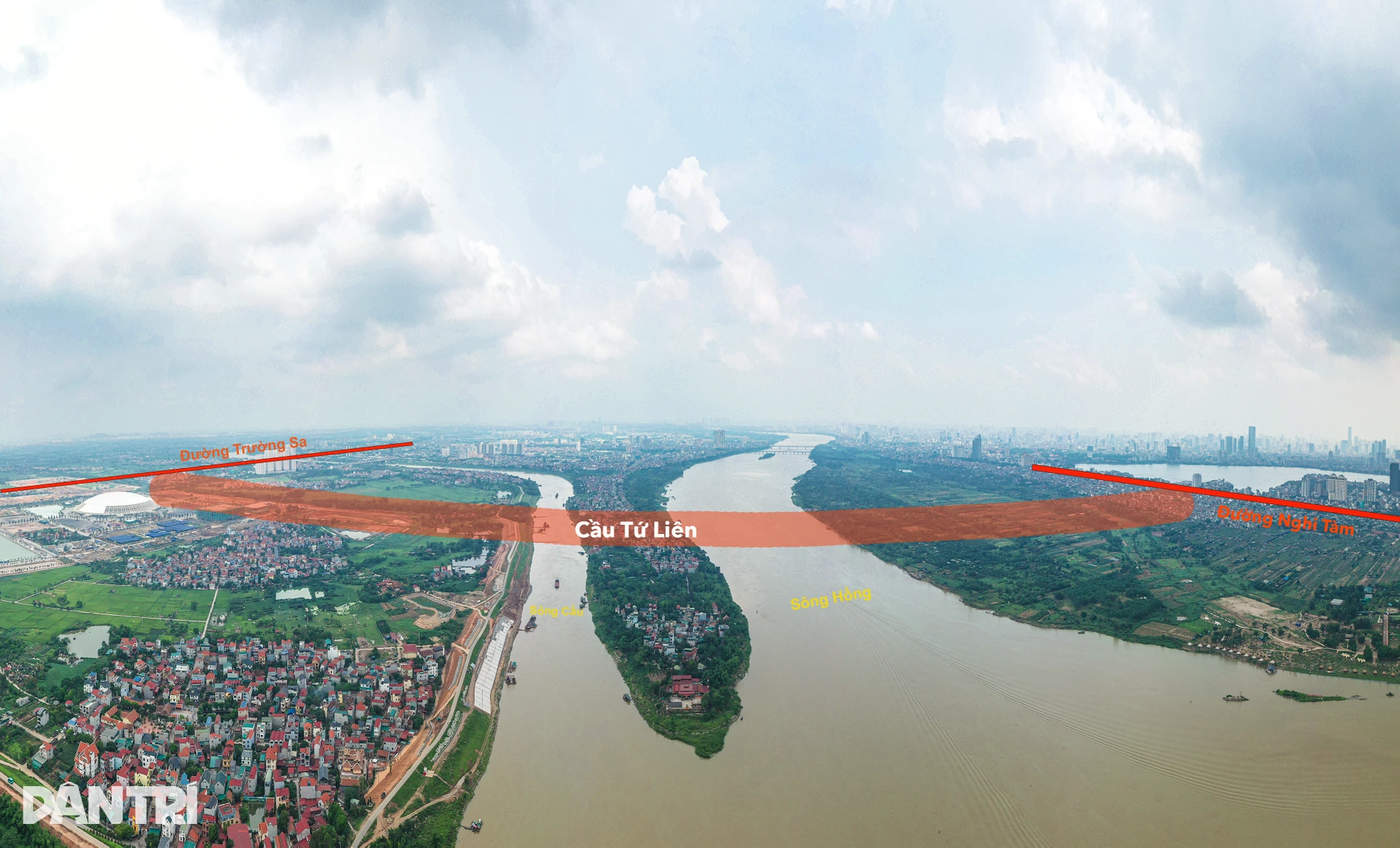 Toàn cảnh khu vực xây cầu Tứ Liên bắc qua sông Hồng và sông Đuống
